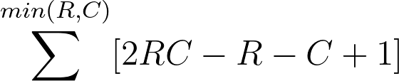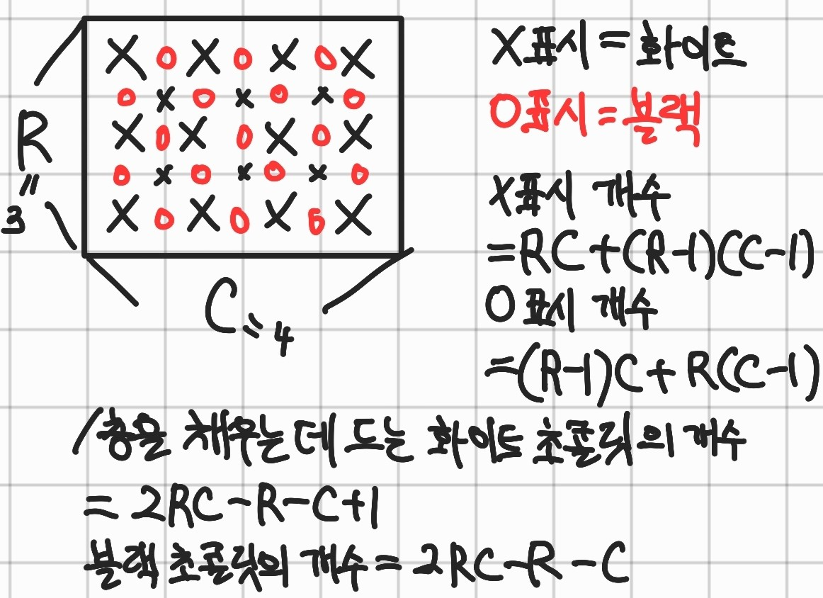 검은색 X표시는 $3*4 + 2*3$개이므로, 이를 일반화한다면, $RC + (R-1)(C-1)$개라고 생각할 수 있다.
