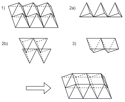 코코는 특이하게 생긴 화이트 초콜릿과 다크 초콜릿을 무한히 많이 갖고 있다. 화이트 초콜릿은 각 모서리의 길이가 1인 사각 피라미드이고, 다크 초콜릿은 각 모서리의 길이가 1인 정사면체 모