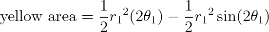 total = r1*r1*(theta1-sin(theta1))/2 + r2*r2*(theta2-sin(theta2))/2