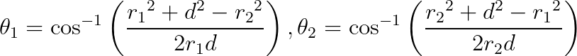 theta2 = 2*acos((r2*r2+d*d-r1*r1)/(2*r2*d))