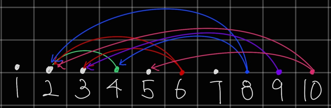 그렇다면 우리는 $1$부터 $10$까지의 상황들을 다음과 같은 그래프처럼 묘사할 수 있다.