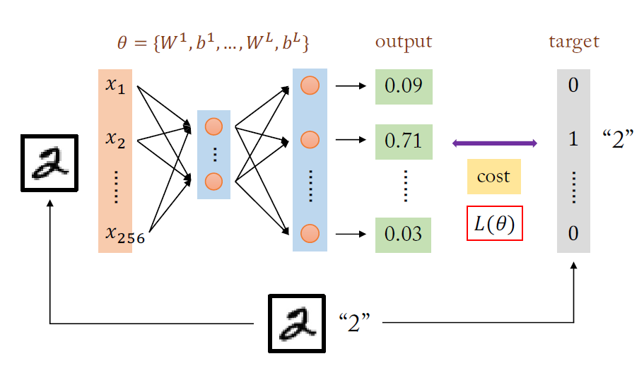 그리고 parameter $\theta = \{ W^1, b^1, ... , W^L, b^L \}$이 있다고 합시다.