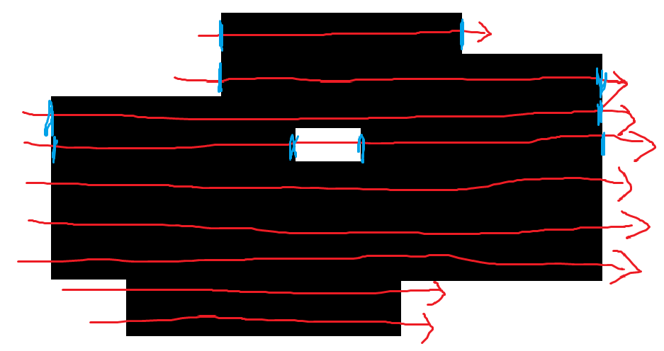 귀찮아서 다 표시는 못했지만, 2차원 배열을 색칠한 후에 행 별로 순회하며 세로 길이를 모두 잴 수 있다.