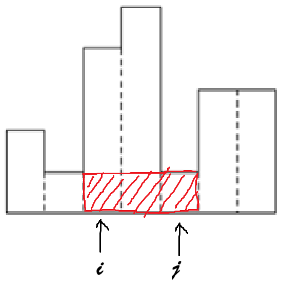 따라서, 투 포인터 기법처럼 $i$를 고정시킨 상태에서 $j$를 오른쪽으로 점점 늘려가며 넓이를 갱신시키면 된다.