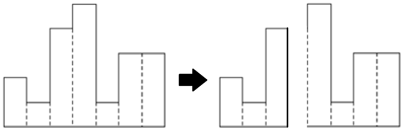 - 단위 길이의 폭을 가지는 막대들이 일렬로 나열된 히스토그램이 주어짐.