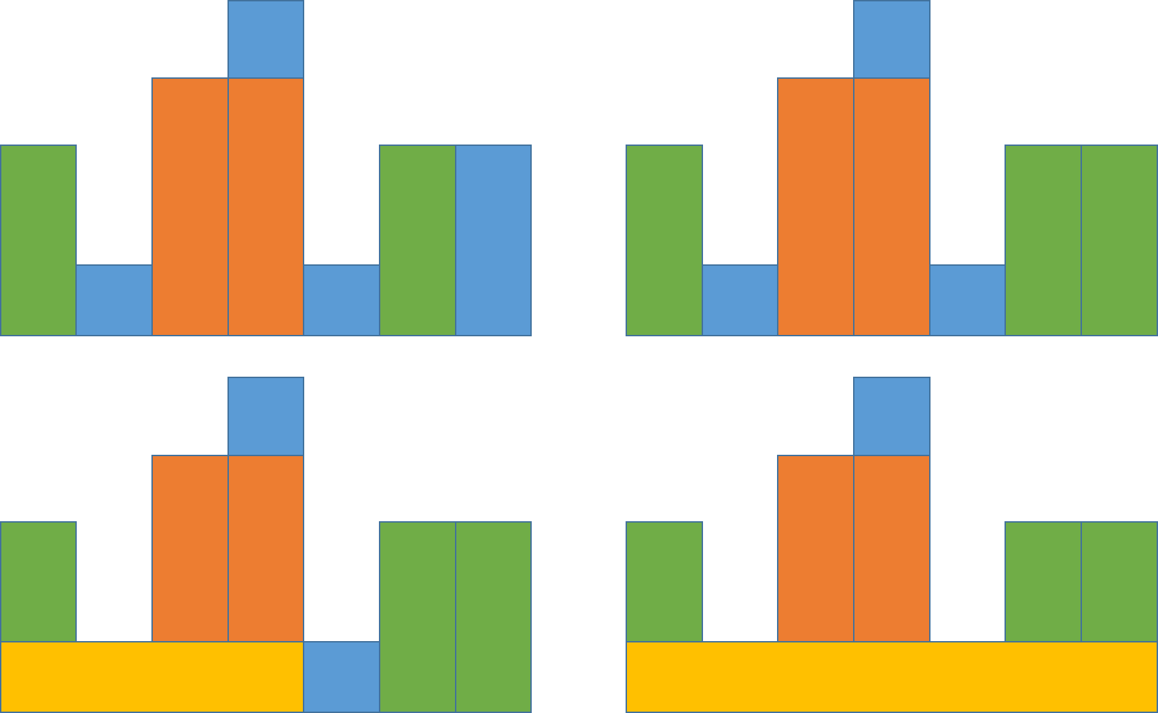 두 부분 히스토그램 사이에 걸쳐있다는 뜻은, 왼쪽 부분 히스토그램 끝 막대의 인덱스를 $mid$라고 할 때 $mid$를 항상 포함하며 오른쪽과 왼쪽으로 뻗어나가는, 가장 큰 직사각형을 의미한다.