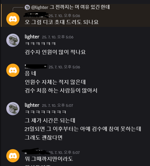 근데 갑자기 먼저 동우님께서 검수할 수 있냐고 선 연락이 오시길래, 검수자 인원이 많이 적은가보다 하고 생각했습니다.