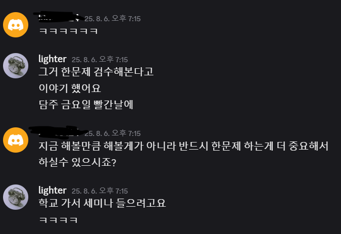 그러다가 검수한다고 해놓고 검수를 한문제도 안하는게 좀 양심에 찔려서 대회를 2주 정도 앞둔 8월 6일날 다시 연락을 했습니다.